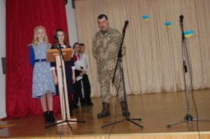 В рамках реалізації виховного проекту « Тепло моїх долонь, і розуму, і серця я Україні милій віддаю» класним керівником Скибінською О. та вихователем Ящук О. 23 лютого напередодні дня вшанування полеглих воїнів АТО та героїв Небесної сотні, було проведено зустріч з батьками-воїнами АТО. Вихованці 6-А класу підготували відео- презентацію про воїнів АТО та полеглих на Майдані. Запрошені батьки Маринець С. і Бугайчук О. цікаво та доступно розповіли про події пережиті ними під час перебування на Сході України. Ознайомили з проблемами місцевого населення, що проживають в даній місцевості, адже життя в період війни надзвичайно жорстке та непередбачуване.